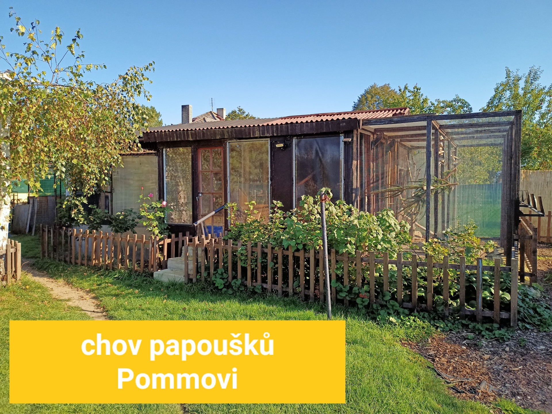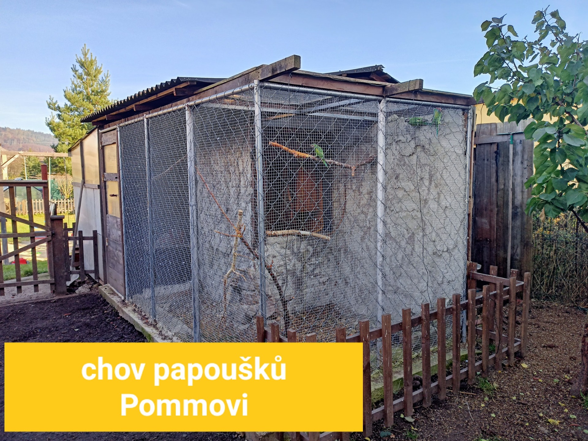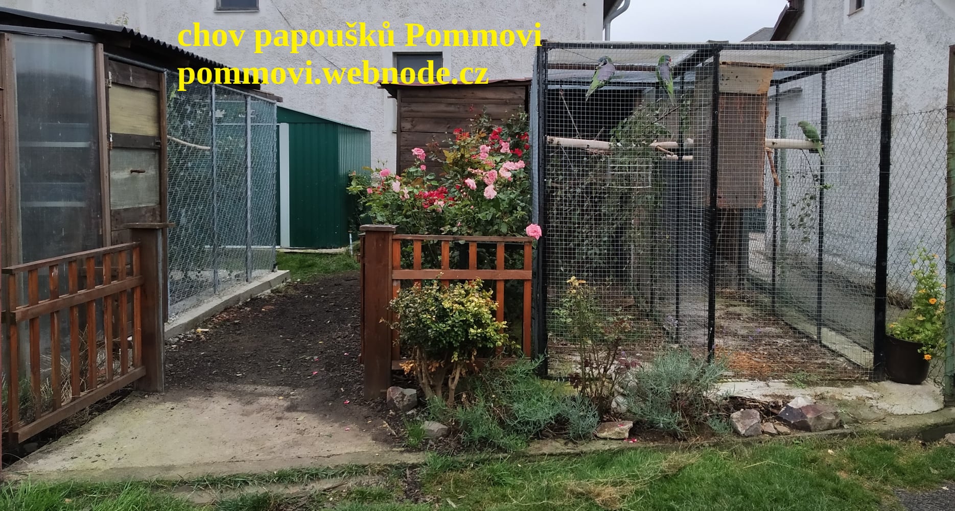 3) vnitřní voliéra 4 x 2 x 2 metry, kterou obývá hejno korel, samec pap.horského a nádherného, neofémy a zebřičky